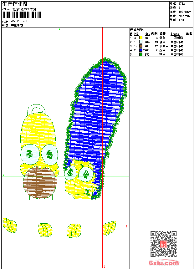 卡通新普森一家 点此上传花版兑乐绣币/现金 emb花版参数: 大小:47.50 KB / 尺寸:71*102[毫米] / 针数:6782针 / 线色:5 / 格式:emb / 版本:9 版带文件需绣花软件方可打开,可配色打印导出各种格式或直接上机绣。如无绣花软件可下载1:1模拟效果图。 PNG图片信息:大小:0.1(MB) /图宽*高:268x388(像素) emb下载 1:1图下载 关闭 相似花版: 跳跳虎卡通 保罗骑马男装polo 鸟语花香 鸟语花香条码 菊花 菊花 椰树狼 小鸟在树枝上 几何图案 手机壳 小鸟 手机壳 抱枕 丹顶鹤仙鹤鸟吉祥 小狗 亮片变色龙蜥蜴蜻蜓花朵 佛绣 豹子 简单的花 小狗 上一个花样:中国风古典绣 下一个花样:跳跳虎卡通