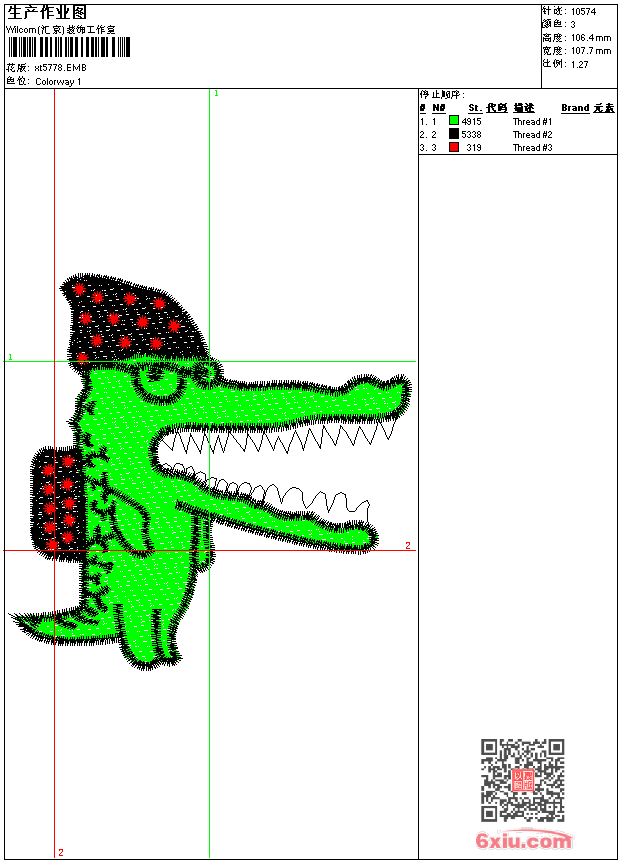 卡通鳄鱼 点此上传花版兑乐绣币/现金 emb花版参数: 大小:63.50 KB / 尺寸:108*106[毫米] / 针数:10574针 / 线色:3 / 格式:emb / 版本:9 版带文件需绣花软件方可打开,可配色打印导出各种格式或直接上机绣。如无绣花软件可下载1:1模拟效果图。 PNG图片信息:大小:0.2(MB) /图宽*高:408x403(像素) emb下载 1:1图下载 关闭 相似花版: 靓花中国风传统鲤鱼吉祥 靓花中国风传统 中国风传统图案 衣领 少数民族挑水的美女 靓大花朵 小猫 鸟语花香 京剧脸谱美女 吹箫的美女 荷花经典 徽章标志狮子男装 卡通狐狸 抽象的 简单花 靓荷花 靓花 简单花 简单花 领子 上一个花样:简单花朵 下一个花样:靓花中国风传统鲤鱼吉祥