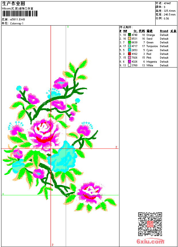 靓花牡丹 点此上传花版兑乐绣币/现金 emb花版参数: 大小:248.00 KB / 尺寸:240*325[毫米] / 针数:47447针 / 线色:9 / 格式:emb / 版本:9 版带文件需绣花软件方可打开,可配色打印导出各种格式或直接上机绣。如无绣花软件可下载1:1模拟效果图。 PNG图片信息:大小:1.0(MB) /图宽*高:910x1231(像素) emb下载 1:1图下载 关闭 相似花版: 条码 靓花 靓花 靓花 靓花 中国风花 中国风花朵 简单花 蝴蝶 条码 靓花 靓花中国风 花条 花瓶里的花中国风 卡通小熊男装 靓花 鸳鸯荷花中国风 靓花扇子中国风 小鸟 靓花 上一个花样:靓牡丹花 下一个花样:条码