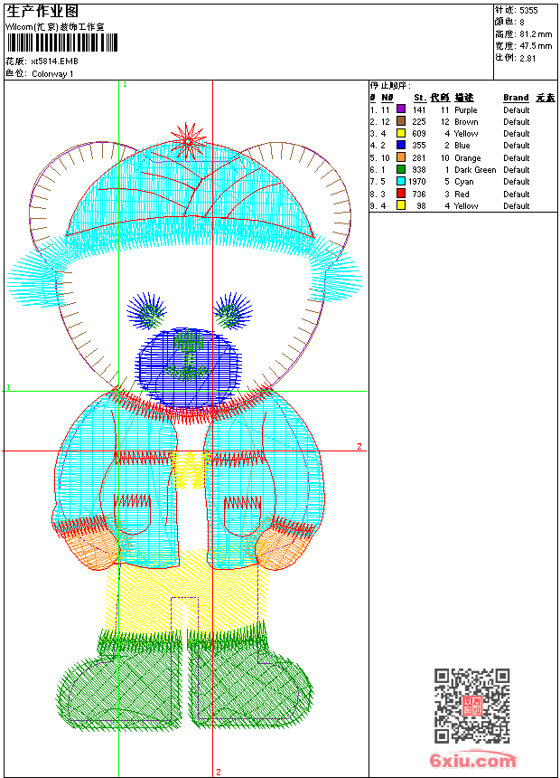 卡通小熊 点此上传花版兑乐绣币/现金 emb花版参数: 大小:46.00 KB / 尺寸:47*81[毫米] / 针数:5355针 / 线色:8 / 格式:emb / 版本:9 版带文件需绣花软件方可打开,可配色打印导出各种格式或直接上机绣。如无绣花软件可下载1:1模拟效果图。 PNG图片信息:大小:0.1(MB) /图宽*高:180x308(像素) emb下载 1:1图下载 关闭 相似花版: 卡通小熊 靓牡丹花 靓花牡丹 条码 靓花 靓花 靓花 靓花 中国风花 中国风花朵 简单花 蝴蝶 条码 靓花 靓花中国风 花条 花瓶里的花中国风 卡通小熊男装 靓花 鸳鸯荷花中国风 上一个花样:中国风荷花经典靓花 下一个花样:卡通小熊