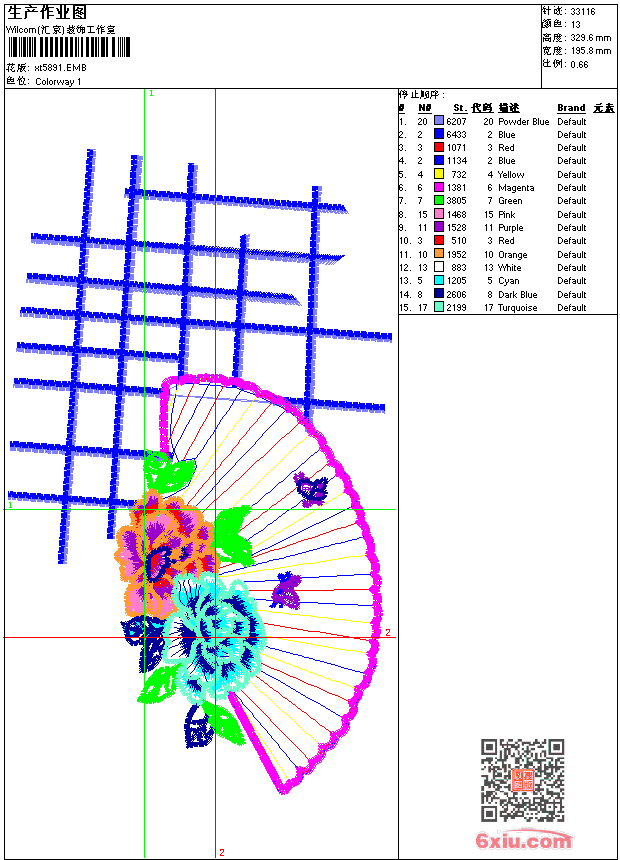 中国风扇子靓花 点此上传花版兑乐绣币/现金 emb花版参数: 大小:168.50 KB / 尺寸:196*330[毫米] / 针数:33116针 / 线色:13 / 格式:emb / 版本:9 版带文件需绣花软件方可打开,可配色打印导出各种格式或直接上机绣。如无绣花软件可下载1:1模拟效果图。 PNG图片信息:大小:0.6(MB) /图宽*高:741x1247(像素) emb下载 1:1图下载 关闭 相似花版: 靓花 孔雀尾巴 骷髅 佛绣 佛绣 佛绣 骷髅 中国古典窗户 小鸟竹子 徽章标志男装 老鹰在树上精品 靓牡丹 简单牡丹 卡通小熊 骷髅 靓花牡丹 靓花牡丹 靓花牡丹 靓花 靓花 上一个花样:靓花 下一个花样:靓花