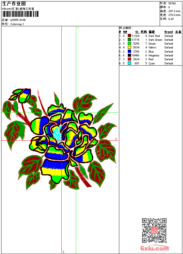 靓花 点此上传花版兑乐绣币/现金 emb花版参数: 大小:323.50 KB / 尺寸:278*247[毫米] / 针数:50760针 / 线色:8 / 格式:emb / 版本:9 版带文件需绣花软件方可打开,可配色打印导出各种格式或直接上机绣。如无绣花软件可下载1:1模拟效果图。 PNG图片信息:大小:1.4(MB) /图宽*高:1052x936(像素) emb下载 1:1图下载 关闭 相似花版: 中国风 凤凰 尾巴 靓花 简单的花 简单的花 简单的花 靓花鲤鱼 靓花 佛绣 蝴蝶 中国风靓花旗袍 卡通大力水手 中国风吉祥抽象 衣领 卡通女孩 简单花 卡通美女 梅花鹿 拍张标志男装 上一个花样:荷花 下一个花样:中国风
