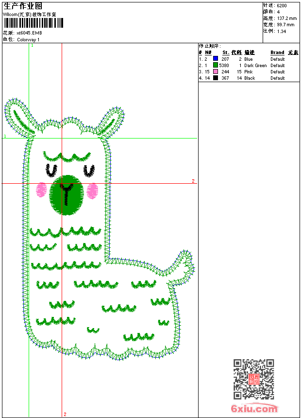 长颈鹿 点此上传花版兑乐绣币/现金 emb花版参数: 大小:54.00 KB / 尺寸:100*137[毫米] / 针数:6200针 / 线色:4 / 格式:emb / 版本:9 版带文件需绣花软件方可打开,可配色打印导出各种格式或直接上机绣。如无绣花软件可下载1:1模拟效果图。 PNG图片信息:大小:0.1(MB) /图宽*高:378x519(像素) emb下载 1:1图下载 关闭 相似花版: 西游记孙悟空猴子 钻石 gucci 鸟语花香 头像领子 梅花 鸟语花香 孔雀 靓花 靓花 靓花 中国古典图案 卡通笑脸表情 卡通笑脸表情 中国风蝴蝶 靓花 靓花 靓花 靓花 简单花 上一个花样:毛巾绣背靠背kappa 下一个花样:西游记孙悟空猴子