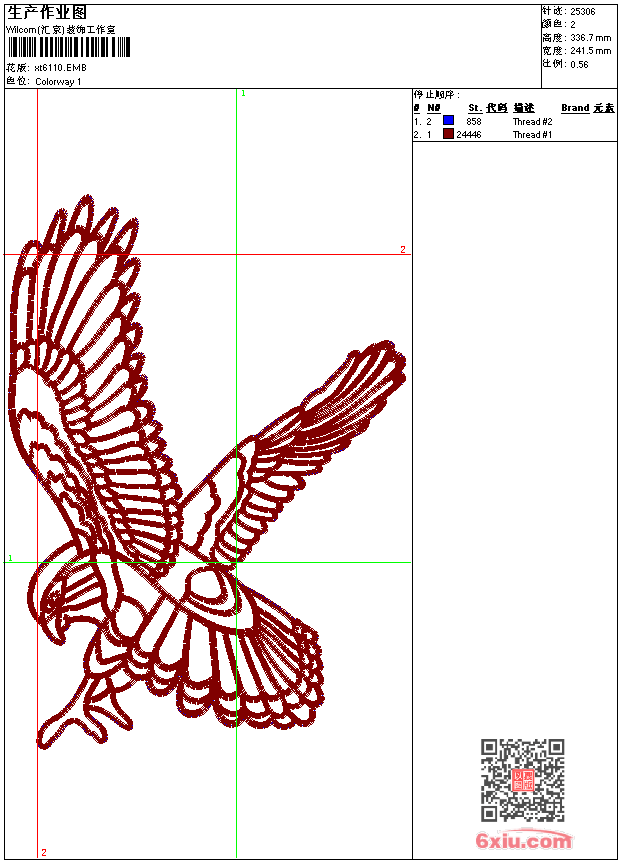 老鹰 点此上传花版兑乐绣币/现金 emb花版参数: 大小:134.00 KB / 尺寸:242*337[毫米] / 针数:25306针 / 线色:2 / 格式:emb / 版本:9 版带文件需绣花软件方可打开,可配色打印导出各种格式或直接上机绣。如无绣花软件可下载1:1模拟效果图。 PNG图片信息:大小:0.8(MB) /图宽*高:914x1274(像素) emb下载 1:1图下载 关闭 相似花版: 丹顶鹤天鹅 欧洲贵妇人头像 英国贵妇人头像 卡通幸福的一家人 手指 领子 翅膀一样的东西 绵阳 卡通树和鸟 兔子 猫头鹰 跳舞的山羊 老鹰 中国风鲤鱼 徽章标志企鹅 徽章标志码 徽章标志码头 猫头鹰 十字绣花朵 领子 上一个花样:中国风燕子靓花 下一个花样:丹顶鹤天鹅