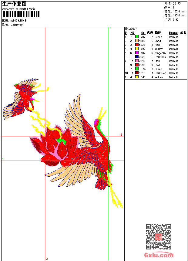 仙鹤 点此上传花版兑乐绣币/现金 emb花版参数: 大小:145.50 KB / 尺寸:146*157[毫米] / 针数:20175针 / 线色:8 / 格式:emb / 版本:9 版带文件需绣花软件方可打开,可配色打印导出各种格式或直接上机绣。如无绣花软件可下载1:1模拟效果图。 PNG图片信息:大小:0.3(MB) /图宽*高:551x596(像素) emb下载 1:1图下载 关闭 相似花版: 凤凰 中国风 中国风靓花鲤鱼 佛像 靓花牡丹 靓花 靓花 鲤鱼弹琴 美人鱼 狮子梅花鹿和狼 小鸟 小鸟 特种绣小鸟 小狗宠物犬 小鸟 豹子头老虎 带字母的花朵 皇冠鸟徽章标志男装 带字母的花朵 徽章标志刚仔机器人 上一个花样:仙鹤 下一个花样:凤凰