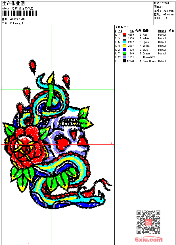 靓花骷髅和蛇蛇 点此上传花版兑乐绣币/现金 emb花版参数: 大小:227.00 KB / 尺寸:102*139[毫米] / 针数:32881针 / 线色:8 / 格式:emb / 版本:9 版带文件需绣花软件方可打开,可配色打印导出各种格式或直接上机绣。如无绣花软件可下载1:1模拟效果图。 PNG图片信息:大小:0.3(MB) /图宽*高:388x526(像素) emb下载 1:1图下载 关闭 相似花版: 仙鹤丹顶鹤 有翅膀的马天马 靓花 卡通小鬼 凤凰 老虎 靓花 靓花 蝴蝶靓花 卡通猫头 卡通北极熊 亮片变色龙 靓花 天鹅 卡通马 卡通恐龙 卡通猫 卡通马 卡通熊 卡通小兔子 上一个花样:动物狼头 下一个花样:仙鹤丹顶鹤