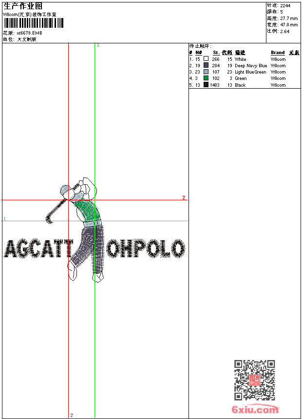保罗高尔夫男装 点此上传花版兑乐绣币/现金 emb花版参数: 大小:32.50 KB / 尺寸:48*28[毫米] / 针数:2244针 / 线色:5 / 格式:emb / 版本:9 版带文件需绣花软件方可打开,可配色打印导出各种格式或直接上机绣。如无绣花软件可下载1:1模拟效果图。 PNG图片信息:大小:0.1(MB) /图宽*高:181x105(像素) emb下载 1:1图下载 关闭 相似花版: 靓花 狮子 骷髅头的蝴蝶 动物金钱豹 动物狼头 靓花骷髅和蛇蛇 仙鹤丹顶鹤 有翅膀的马天马 靓花 卡通小鬼 凤凰 老虎 靓花 靓花 蝴蝶靓花 卡通猫头 卡通北极熊 亮片变色龙 靓花 天鹅 上一个花样:十字绣 下一个花样:靓花