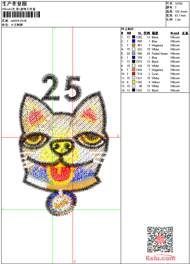 卡通小狗 点此上传花版兑乐绣币/现金 emb花版参数: 大小:83.00 KB / 尺寸:84*102[毫米] / 针数:10760针 / 线色:7 / 格式:emb / 版本:9 版带文件需绣花软件方可打开,可配色打印导出各种格式或直接上机绣。如无绣花软件可下载1:1模拟效果图。 PNG图片信息:大小:0.2(MB) /图宽*高:317x388(像素) emb下载 1:1图下载 关闭 相似花版: 卡通小狗 宇宙太阳系 卡通山羊 十字绣 保罗高尔夫男装 靓花 狮子 骷髅头的蝴蝶 动物金钱豹 动物狼头 靓花骷髅和蛇蛇 仙鹤丹顶鹤 有翅膀的马天马 靓花 卡通小鬼 凤凰 老虎 靓花 靓花 蝴蝶靓花 上一个花样:小鸟 下一个花样:卡通小狗
