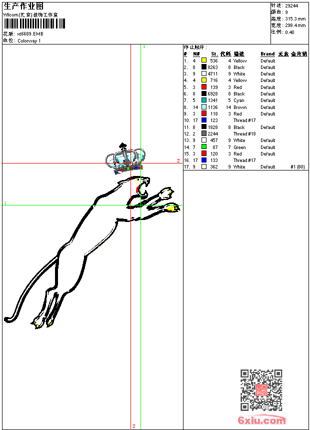 金钱豹皇冠 点此上传花版兑乐绣币/现金 emb花版参数: 大小:225.00 KB / 尺寸:298*315[毫米] / 针数:29244针 / 线色:9 / 格式:emb / 版本:9 版带文件需绣花软件方可打开,可配色打印导出各种格式或直接上机绣。如无绣花软件可下载1:1模拟效果图。 PNG图片信息:大小:0.3(MB) /图宽*高:1129x1193(像素) emb下载 1:1图下载 关闭 相似花版: 猴子上树 皇冠亮片 亮片小鸟 小鸟 卡通小狗 卡通小狗 宇宙太阳系 卡通山羊 十字绣 保罗高尔夫男装 靓花 狮子 骷髅头的蝴蝶 动物金钱豹 动物狼头 靓花骷髅和蛇蛇 仙鹤丹顶鹤 有翅膀的马天马 靓花 卡通小鬼 上一个花样:动动动狮子 下一个花样:猴子上树
