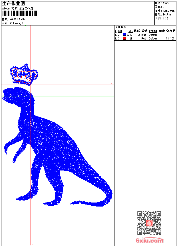 恐龙皇冠亮片 点此上传花版兑乐绣币/现金 emb花版参数: 大小:68.00 KB / 尺寸:97*125[毫米] / 针数:8343针 / 线色:2 / 格式:emb / 版本:9 版带文件需绣花软件方可打开,可配色打印导出各种格式或直接上机绣。如无绣花软件可下载1:1模拟效果图。 PNG图片信息:大小:0.1(MB) /图宽*高:366x474(像素) emb下载 1:1图下载 关闭 相似花版: 动动动狮子 金钱豹皇冠 猴子上树 皇冠亮片 亮片小鸟 小鸟 卡通小狗 卡通小狗 宇宙太阳系 卡通山羊 十字绣 保罗高尔夫男装 靓花 狮子 骷髅头的蝴蝶 动物金钱豹 动物狼头 靓花骷髅和蛇蛇 仙鹤丹顶鹤 有翅膀的马天马 上一个花样:豹子皇冠样本 下一个花样:动动动狮子