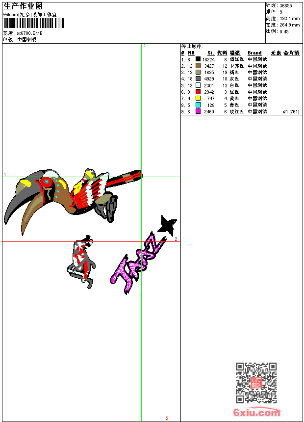 小鸟鹦鹉亮片 点此上传花版兑乐绣币/现金 emb花版参数: 大小:258.50 KB / 尺寸:265*193[毫米] / 针数:36855针 / 线色:9 / 格式:emb / 版本:9 版带文件需绣花软件方可打开,可配色打印导出各种格式或直接上机绣。如无绣花软件可下载1:1模拟效果图。 PNG图片信息:大小:0.4(MB) /图宽*高:1002x731(像素) emb下载 1:1图下载 关闭 相似花版: 徽章标志男装 徽章标志蜜蜂 徽章标志男装 老鹰 有翅膀的狼 徽章标志男装 英文字母 豹子皇冠样本 恐龙皇冠亮片 动动动狮子 金钱豹皇冠 猴子上树 皇冠亮片 亮片小鸟 小鸟 卡通小狗 卡通小狗 宇宙太阳系 卡通山羊 十字绣 上一个花样:卡通青蛙亮片骷髅 下一个花样:徽章标志男装