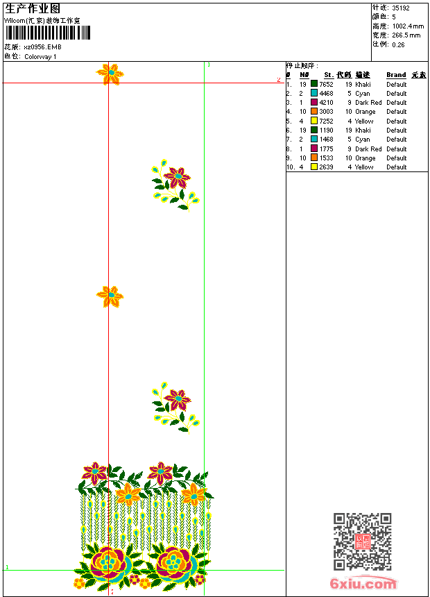 - emb花版参数: 大小:153.50 KB / 尺寸:267*1002[毫米] / 针数:35192针 / 线色:5 / 格式:emb / 版本:9
