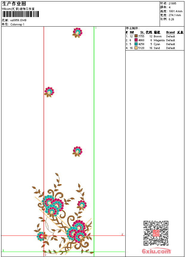- emb花版参数: 大小:125.00 KB / 尺寸:274*1001[毫米] / 针数:21995针 / 线色:4 / 格式:emb / 版本:9