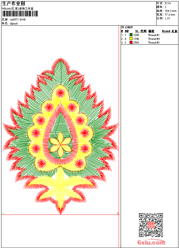 - emb花版参数: 大小:43.50 KB / 尺寸:77*104[毫米] / 针数:5114针 / 线色:3 / 格式:emb / 版本:9