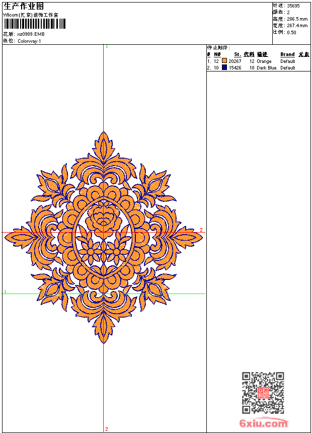 - emb花版参数: 大小:157.00 KB / 尺寸:267*287[毫米] / 针数:35695针 / 线色:2 / 格式:emb / 版本:9