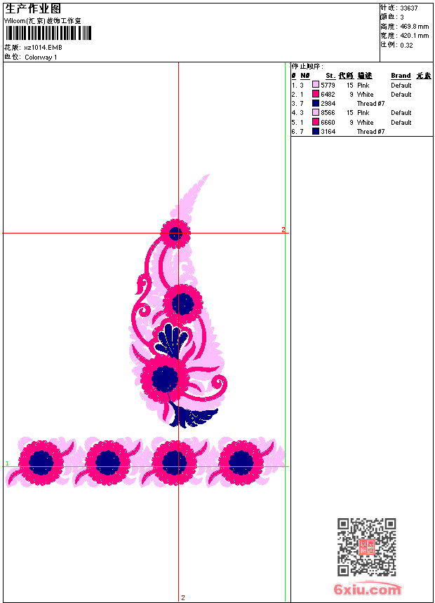 - emb花版参数: 大小:125.50 KB / 尺寸:420*470[毫米] / 针数:33637针 / 线色:3 / 格式:emb / 版本:9