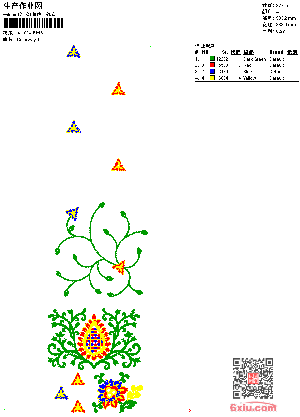 - emb花版参数: 大小:151.00 KB / 尺寸:269*993[毫米] / 针数:27725针 / 线色:4 / 格式:emb / 版本:9