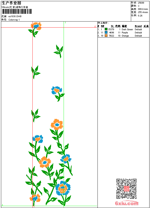 - emb花版参数: 大小:107.00 KB / 尺寸:255*1000[毫米] / 针数:25699针 / 线色:3 / 格式:emb / 版本:9