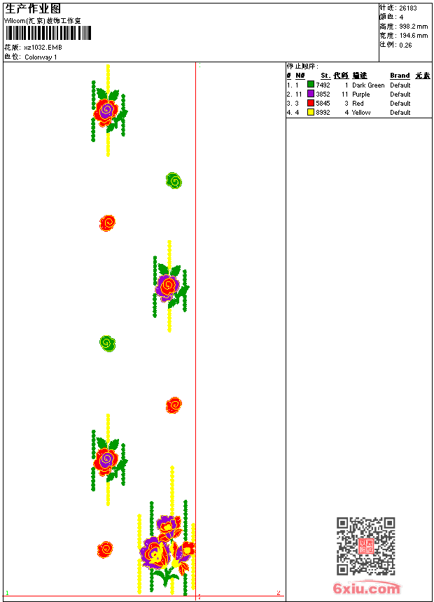 - emb花版参数: 大小:90.50 KB / 尺寸:195*998[毫米] / 针数:26183针 / 线色:4 / 格式:emb / 版本:9