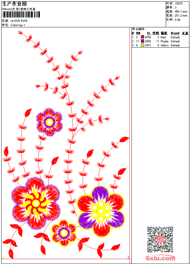 - emb花版参数: 大小:118.00 KB / 尺寸:251*450[毫米] / 针数:15875针 / 线色:3 / 格式:emb / 版本:9