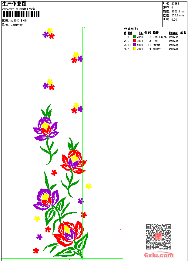 - emb花版参数: 大小:118.00 KB / 尺寸:256*1003[毫米] / 针数:23866针 / 线色:4 / 格式:emb / 版本:9