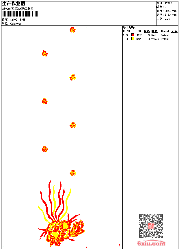 - emb花版参数: 大小:82.50 KB / 尺寸:213*996[毫米] / 针数:17382针 / 线色:2 / 格式:emb / 版本:9