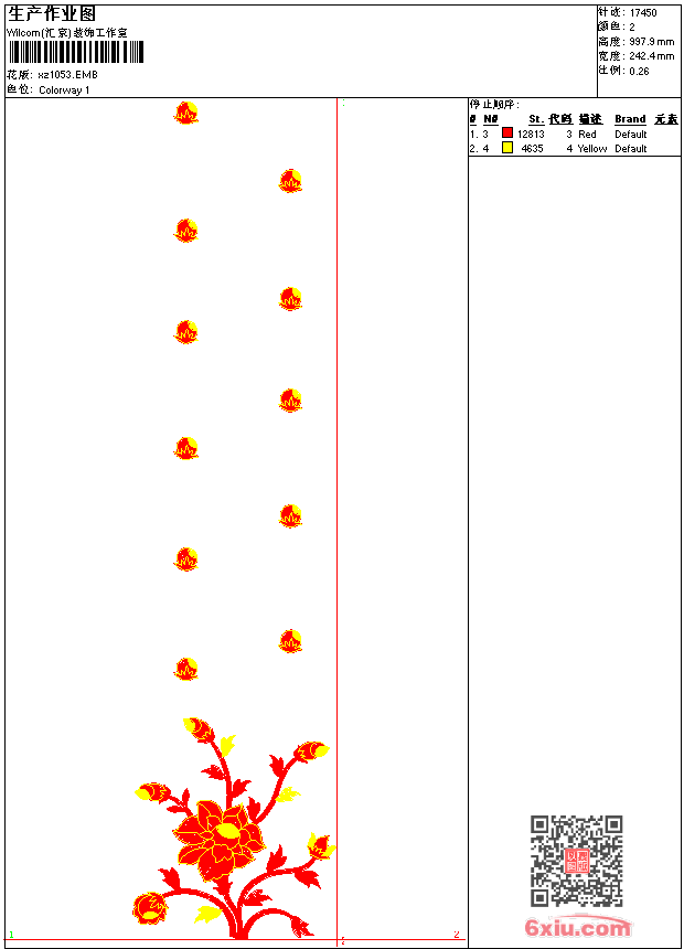 - emb花版参数: 大小:76.50 KB / 尺寸:242*998[毫米] / 针数:17450针 / 线色:2 / 格式:emb / 版本:9