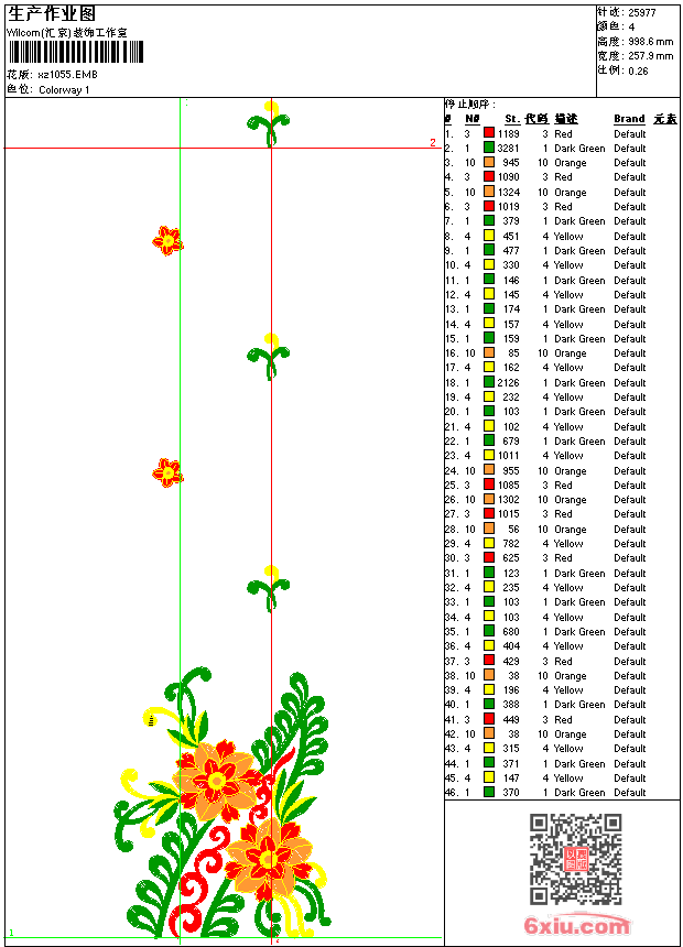 - emb花版参数: 大小:143.50 KB / 尺寸:258*999[毫米] / 针数:25977针 / 线色:4 / 格式:emb / 版本:9