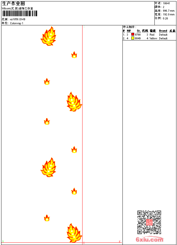 - emb花版参数: 大小:71.50 KB / 尺寸:192*997[毫米] / 针数:18641针 / 线色:2 / 格式:emb / 版本:9