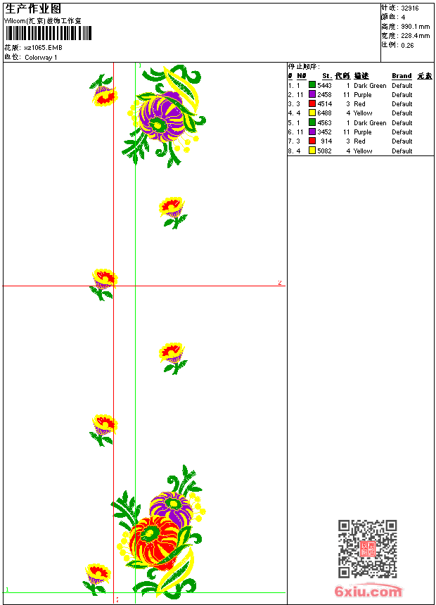 - emb花版参数: 大小:157.00 KB / 尺寸:228*990[毫米] / 针数:32916针 / 线色:4 / 格式:emb / 版本:9