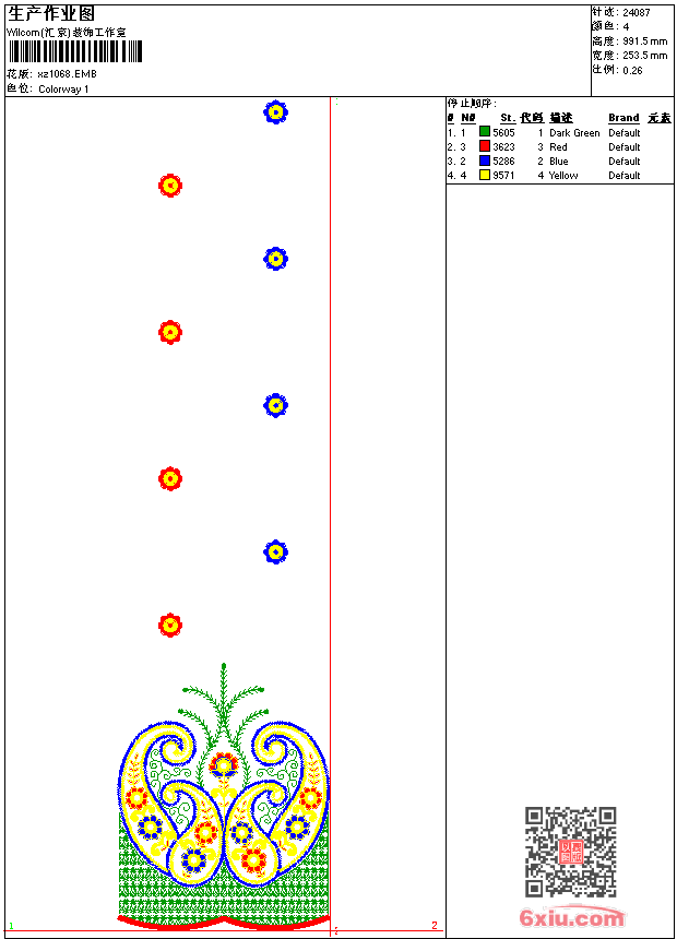 - emb花版参数: 大小:122.50 KB / 尺寸:254*991[毫米] / 针数:24087针 / 线色:4 / 格式:emb / 版本:9