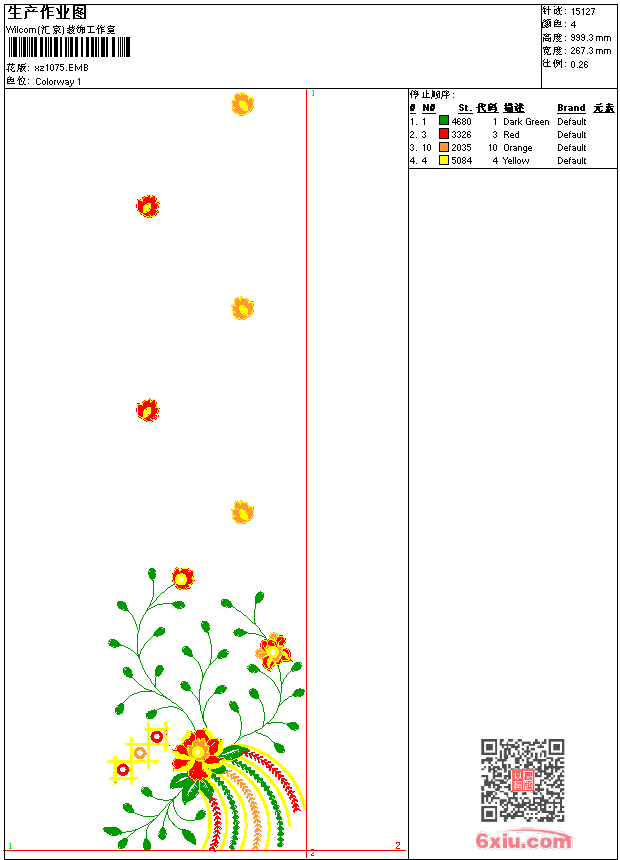 - emb花版参数: 大小:101.00 KB / 尺寸:267*999[毫米] / 针数:15127针 / 线色:4 / 格式:emb / 版本:9