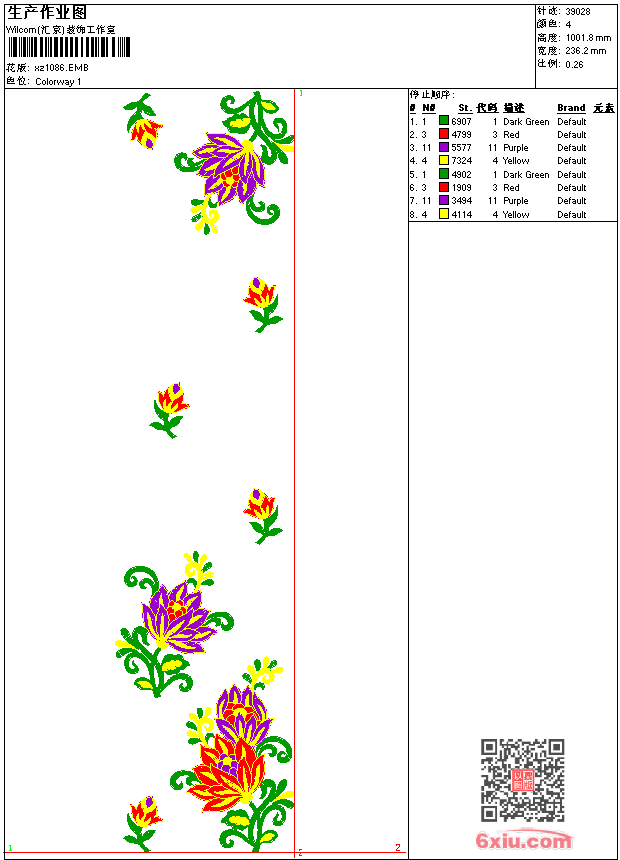 - emb花版参数: 大小:189.00 KB / 尺寸:236*1002[毫米] / 针数:39028针 / 线色:4 / 格式:emb / 版本:9