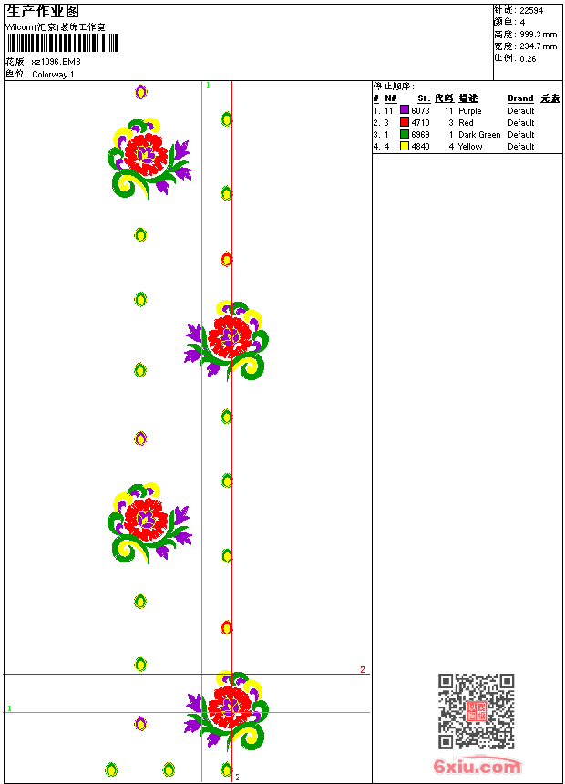 - emb花版参数: 大小:67.50 KB / 尺寸:235*999[毫米] / 针数:22594针 / 线色:4 / 格式:emb / 版本:9