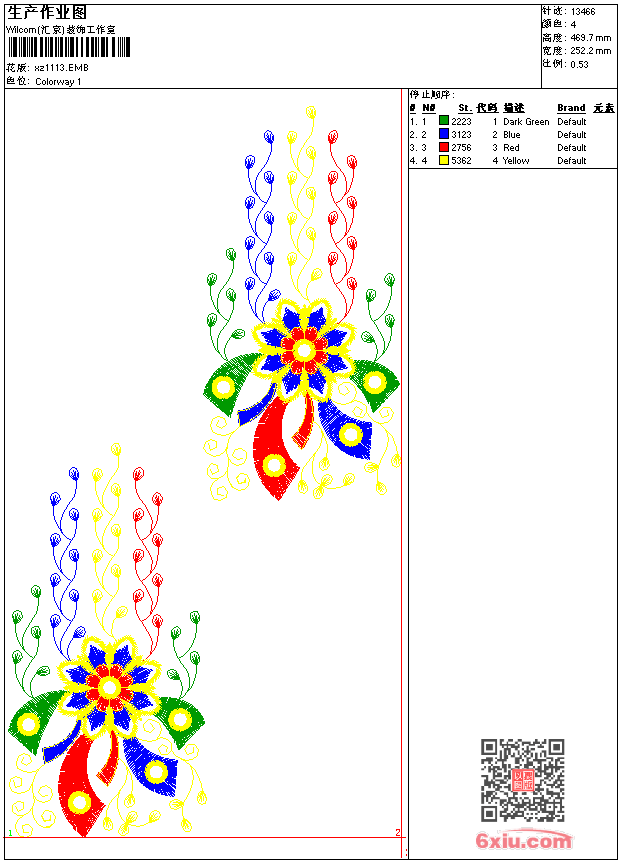 - emb花版参数: 大小:72.00 KB / 尺寸:252*470[毫米] / 针数:13466针 / 线色:4 / 格式:emb / 版本:9