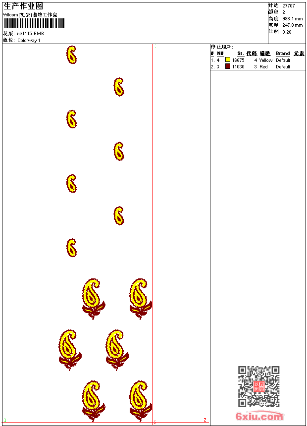 - emb花版参数: 大小:133.00 KB / 尺寸:248*998[毫米] / 针数:27707针 / 线色:2 / 格式:emb / 版本:9