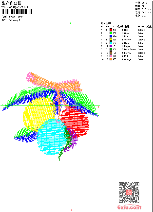 - emb花版参数: 大小:38.00 KB / 尺寸:56*52[毫米] / 针数:3516针 / 线色:10 / 格式:emb / 版本:9