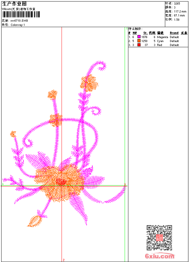 - emb花版参数: 大小:55.50 KB / 尺寸:87*117[毫米] / 针数:3265针 / 线色:3 / 格式:emb / 版本:9