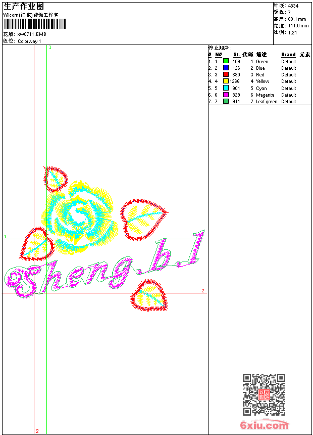 - emb花版参数: 大小:44.00 KB / 尺寸:111*80[毫米] / 针数:4834针 / 线色:7 / 格式:emb / 版本:9