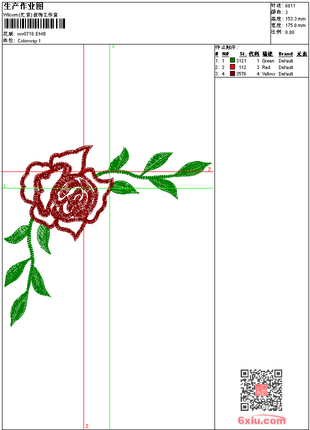 - emb花版参数: 大小:60.50 KB / 尺寸:176*153[毫米] / 针数:6811针 / 线色:3 / 格式:emb / 版本:9