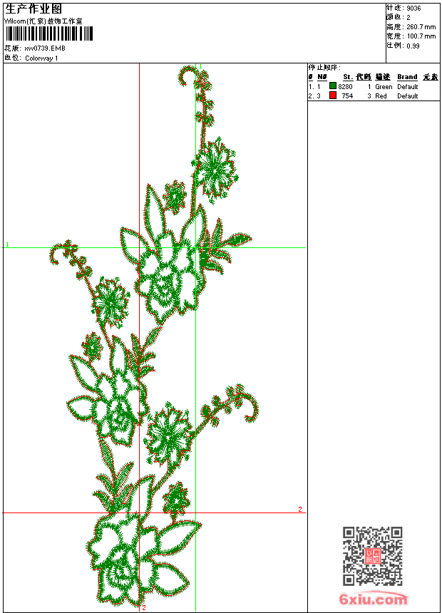 - emb花版参数: 大小:79.00 KB / 尺寸:101*261[毫米] / 针数:9036针 / 线色:2 / 格式:emb / 版本:9