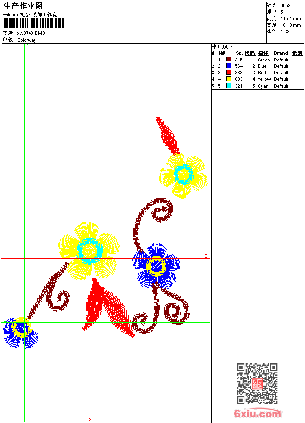 - emb花版参数: 大小:32.00 KB / 尺寸:101*115[毫米] / 针数:4052针 / 线色:5 / 格式:emb / 版本:9