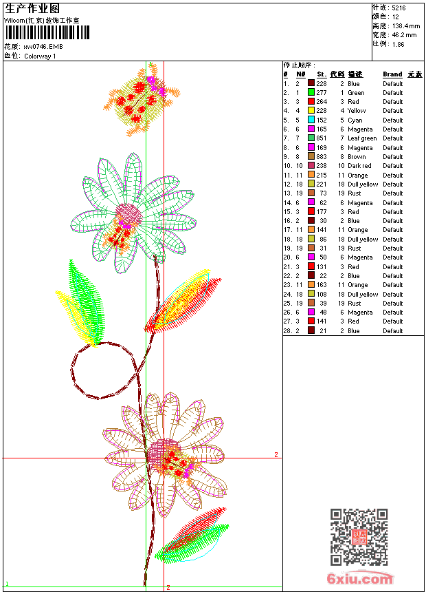 - emb花版参数: 大小:92.00 KB / 尺寸:46*138[毫米] / 针数:5216针 / 线色:12 / 格式:emb / 版本:9