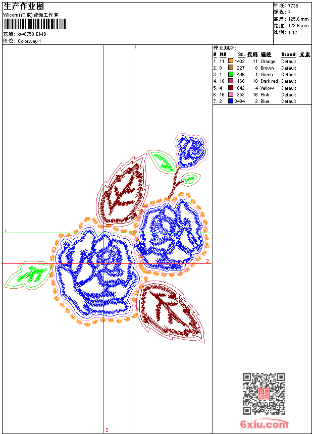 - emb花版参数: 大小:116.50 KB / 尺寸:123*126[毫米] / 针数:7735针 / 线色:7 / 格式:emb / 版本:9
