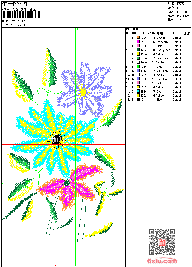 - emb花版参数: 大小:124.50 KB / 尺寸:169*275[毫米] / 针数:15350针 / 线色:11 / 格式:emb / 版本:9