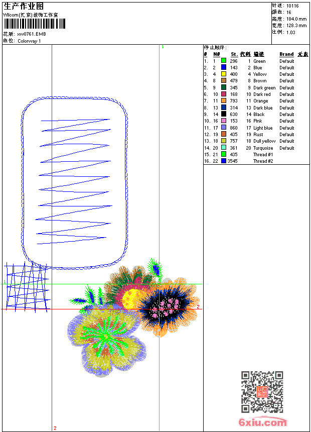 - emb花版参数: 大小:88.50 KB / 尺寸:128*184[毫米] / 针数:10116针 / 线色:16 / 格式:emb / 版本:9