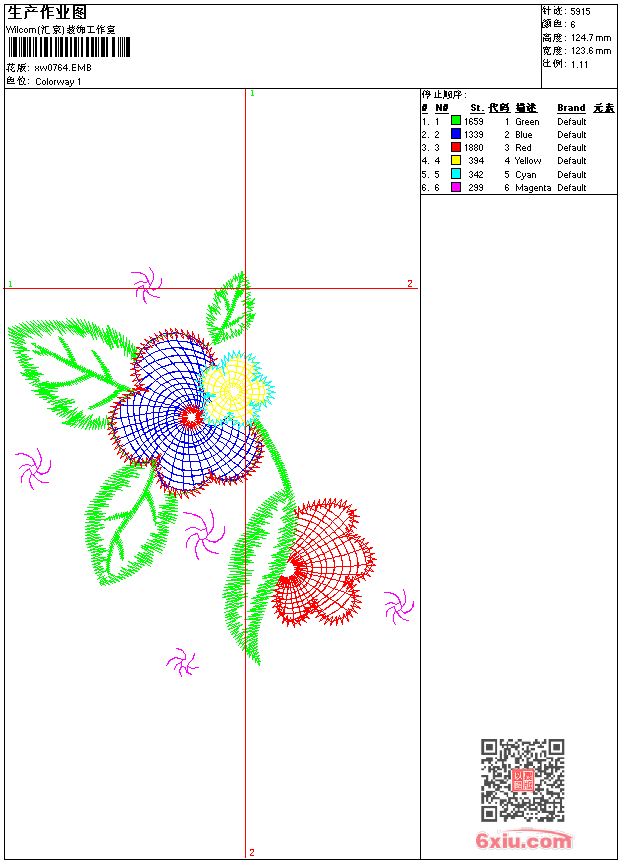 - emb花版参数: 大小:51.50 KB / 尺寸:124*125[毫米] / 针数:5915针 / 线色:6 / 格式:emb / 版本:9