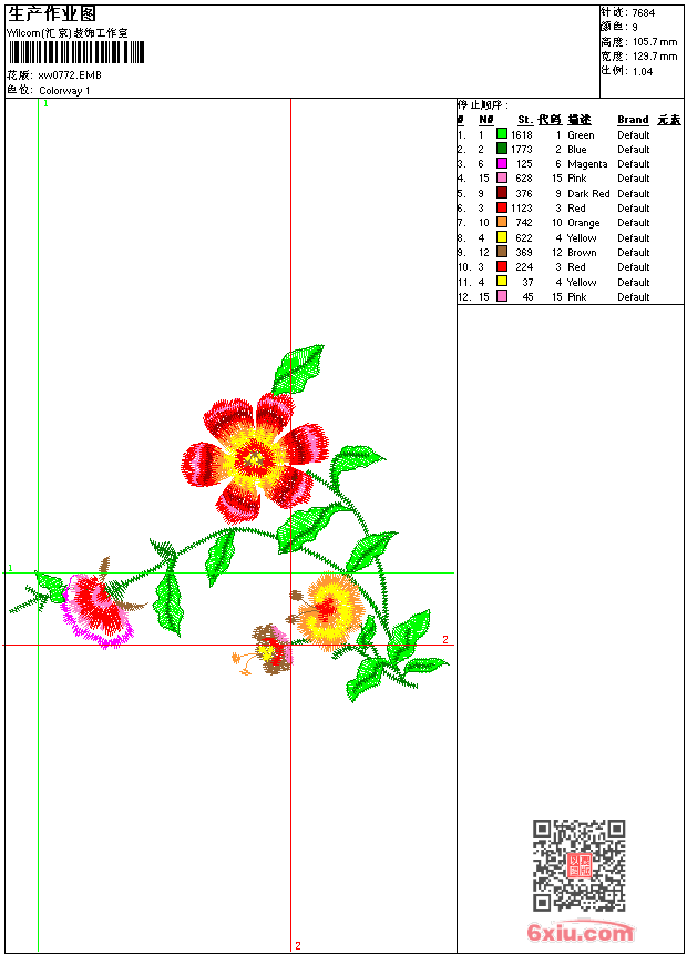- 版带文件需绣花软件方可打开,可配色打印导出各种格式或直接上机绣。如无绣花软件可下载1:1模拟效果图。