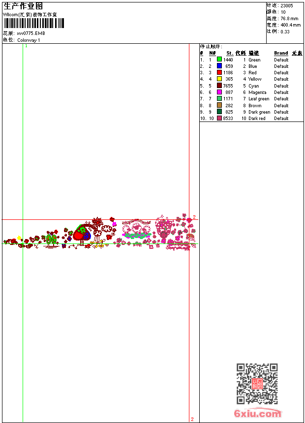 - emb花版参数: 大小:157.50 KB / 尺寸:400*77[毫米] / 针数:23005针 / 线色:10 / 格式:emb / 版本:9