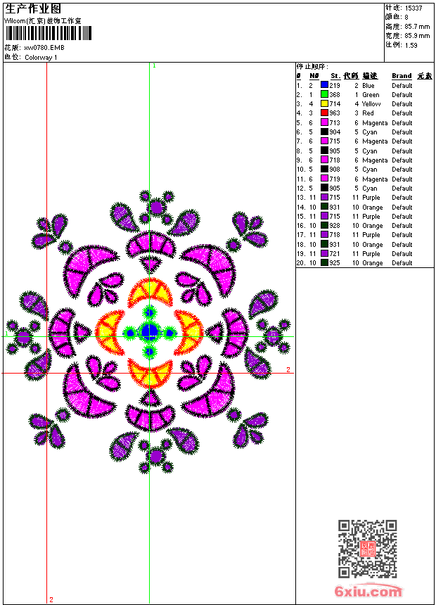 - emb花版参数: 大小:144.50 KB / 尺寸:86*86[毫米] / 针数:15337针 / 线色:8 / 格式:emb / 版本:9